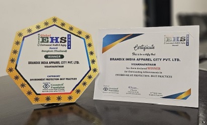 Brandix India Apparel City wins Greentech Global Environment, Health, and Safety (EHS) Award for Best Practices in Environmental Protection.